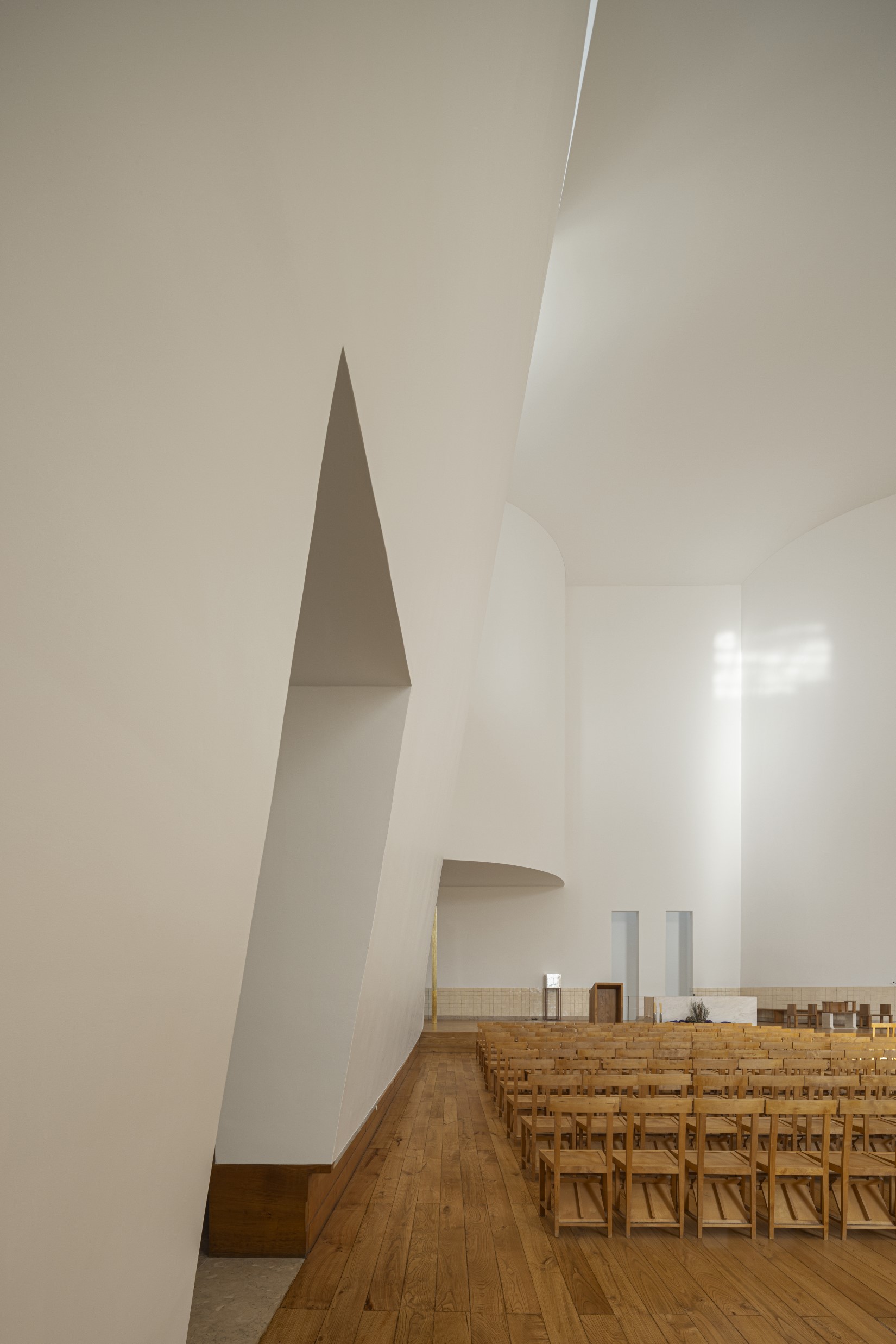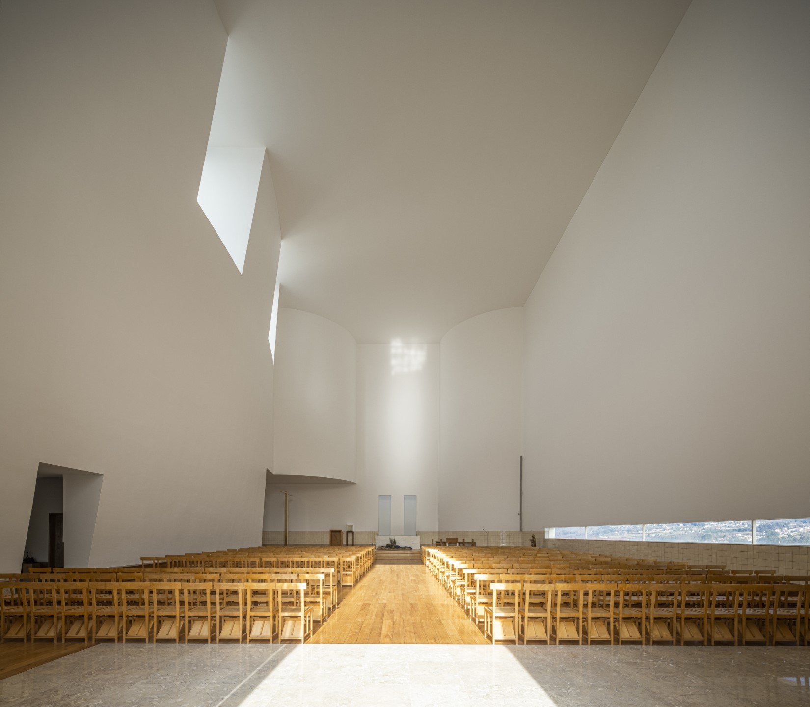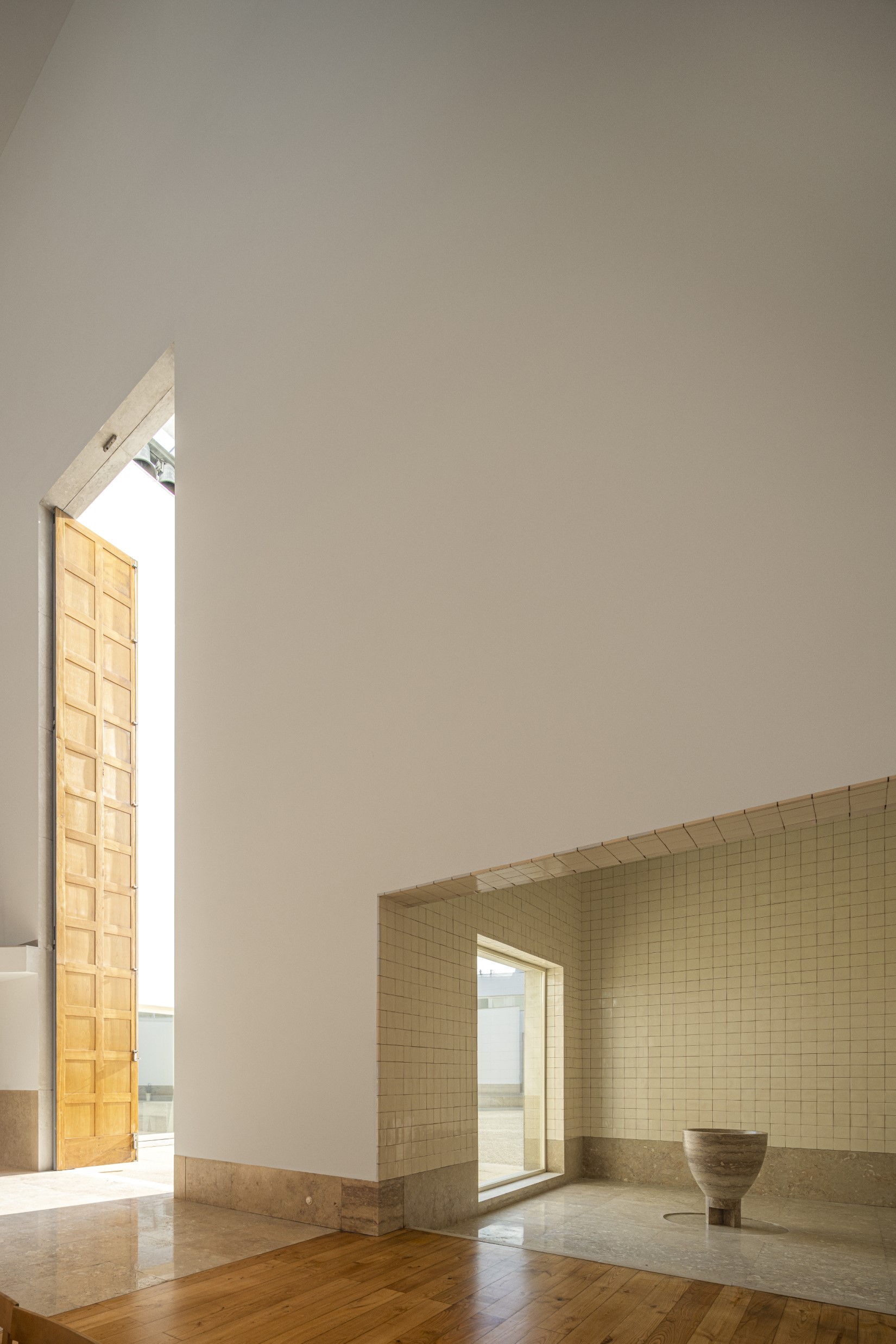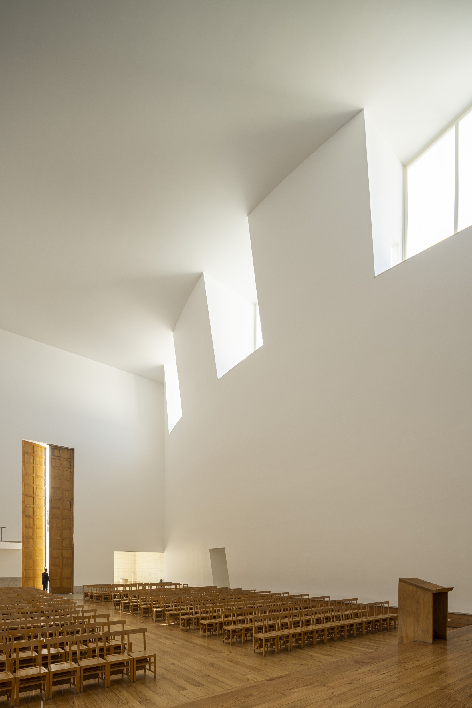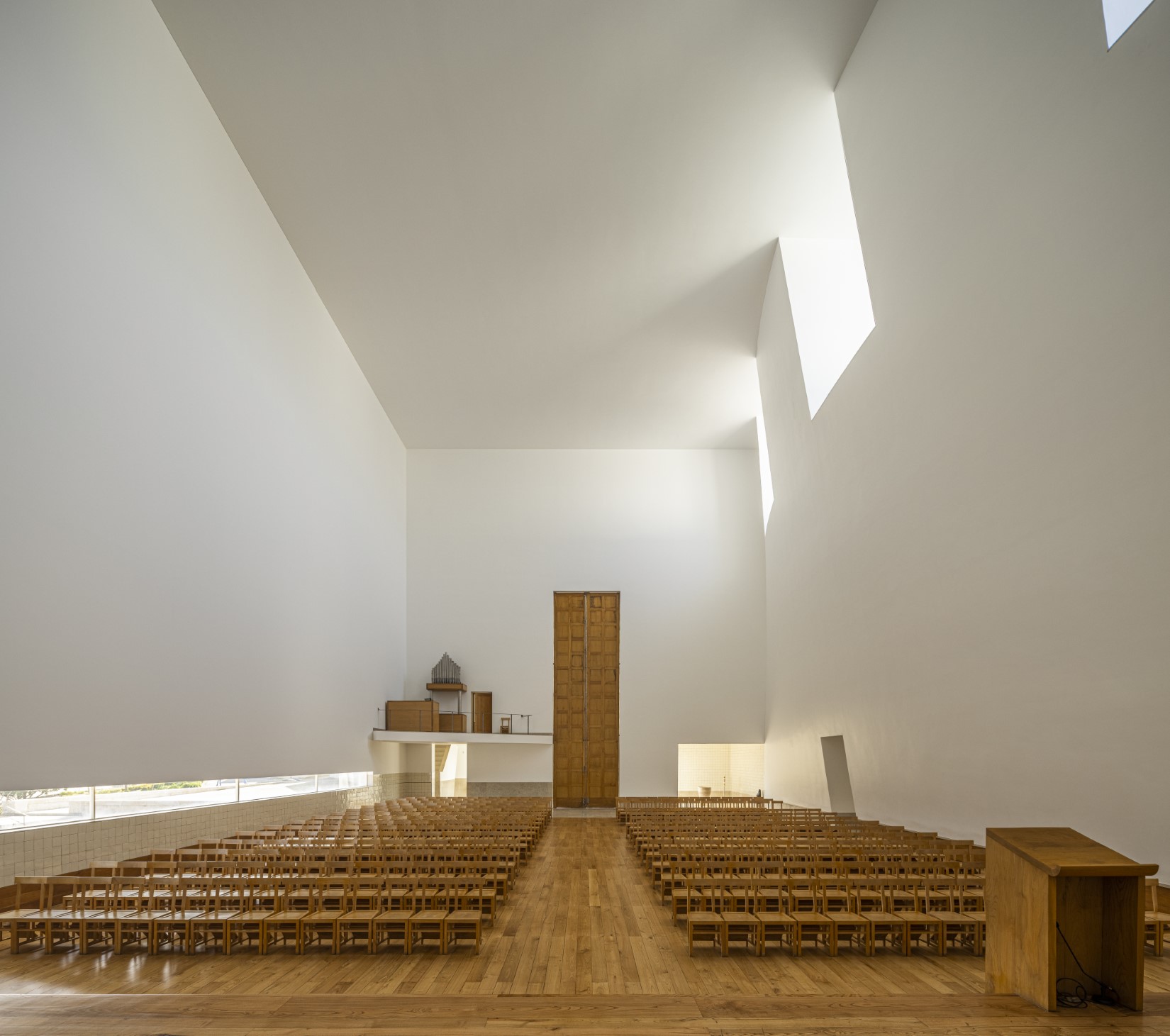 Conservação rigorosa em obra de Siza: luz, pedra e silêncio, de forma a manter uma luminosidade intacta e os detalhes precisos.